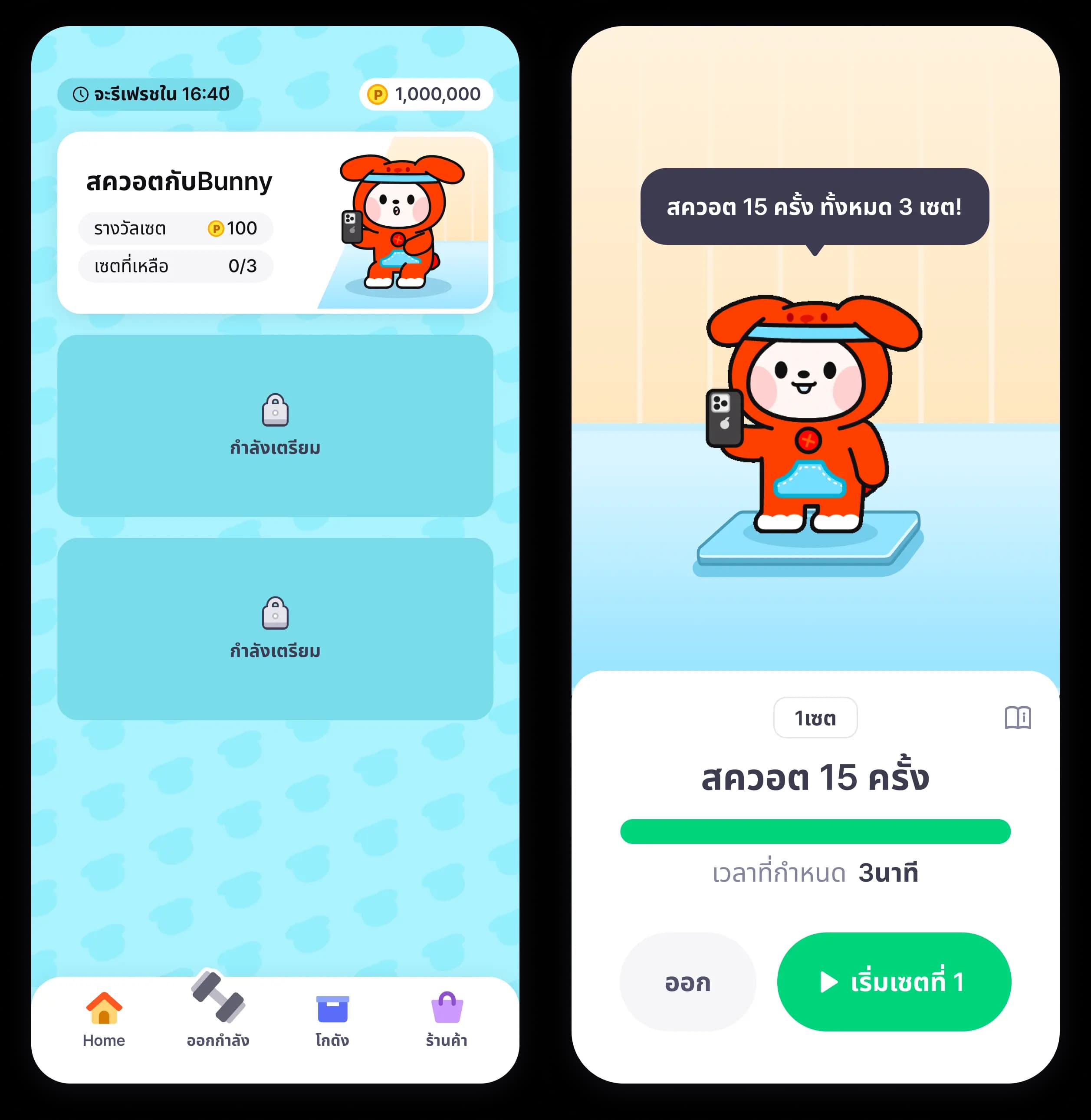 - หากรับพอยต์จากการวิ่งของบันนี่แล้ว ก็ถึงตาของคุณที่จะออกกำลังกายบ้างแล้ว! ทำภารกิจออกกำลังกายง่าย ๆ ให้สำเร็จ แล้วรับพอยต์ไปเลย